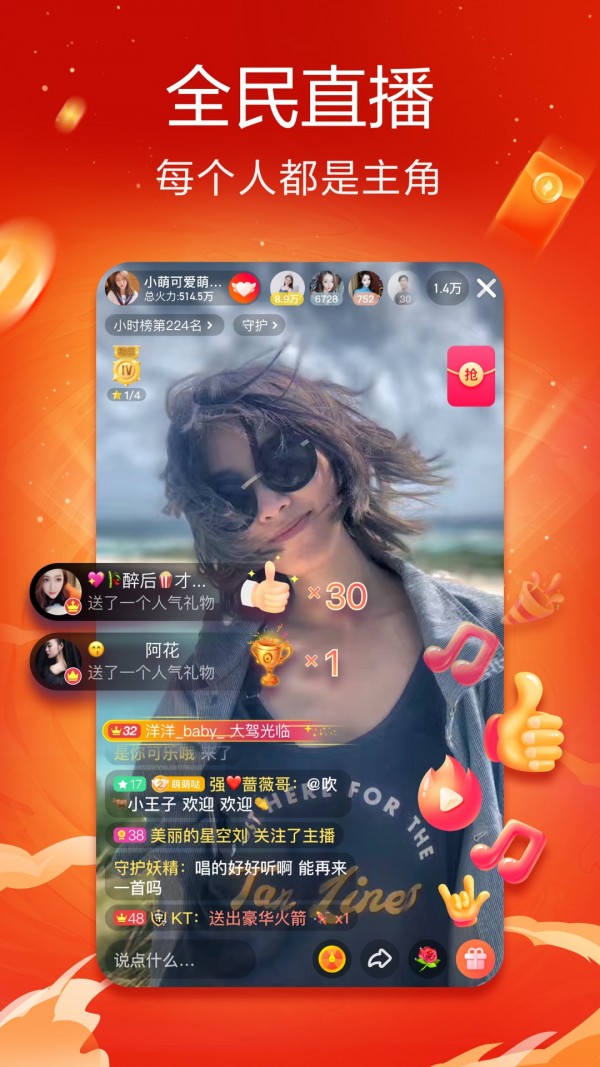 拿起手机就能直播,左右滑动切换美颜滤镜,与粉丝零距离互动,播你想播的一切,成为全场焦点!