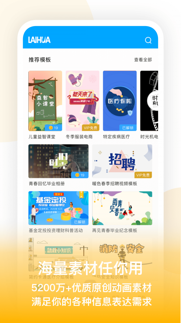 丰富视频素材模版,来画视频app5分钟快速制作出风靡朋友圈的创意小视频