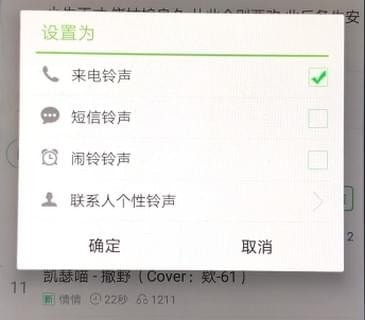 5.选择设置来电铃声,点击确定,就成功的设置铃声啦