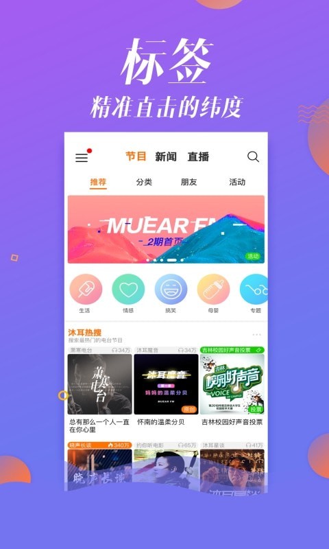 个性推荐:根据你在沐耳FM中看过、听过、评论过的节目类型,从精品推荐库中筛选最合适的内容推送给你。