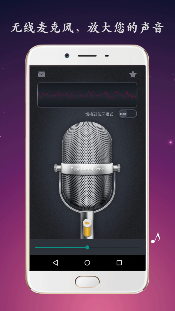 无线麦克风app是适合演唱会或歌唱演奏的工具,无线麦克风app也可以用于音乐会或卡拉OK派对等娱乐活动。它可以将您的设备转换成即时麦克风,让您的声音更响亮!